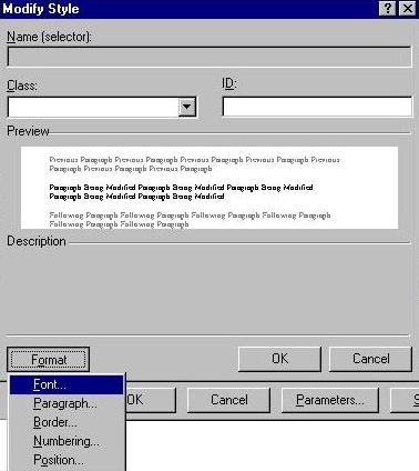 Step 3: | The Modify Style Window will pop up. From this window click on the Format button and choose Font. | ||||||||||||||||||||||||||||||