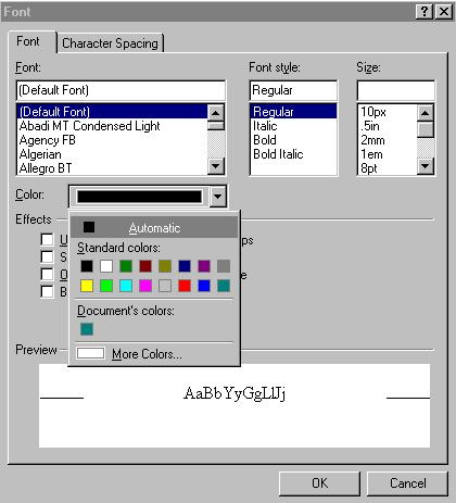 Step 4: | The Font Properties window will pop up. From here you can choose any of your normal font properties. When you are done click ok on all of the other windows to complete the task. | ||||||||||||||||||||||||||||||